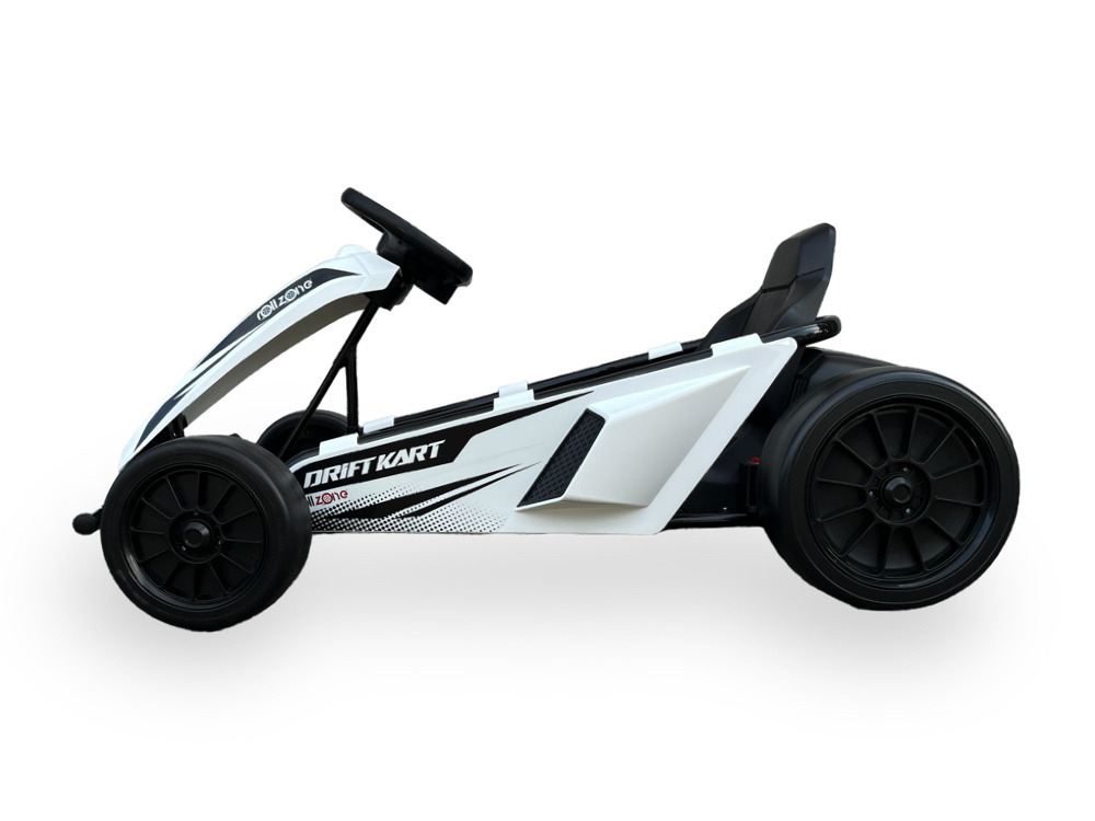 Gewoon een ritje rijden of een spannende drift ervaring? Met de krachtige 24 volt drift kart van ROLLZONE kunnen kinderen geweldige manoeuvres maken. Door de combinatie van krachtig en snelle aandrijvingen en rijden op rubberen banden kan de kart door scherp te sturen heerlijk driften.