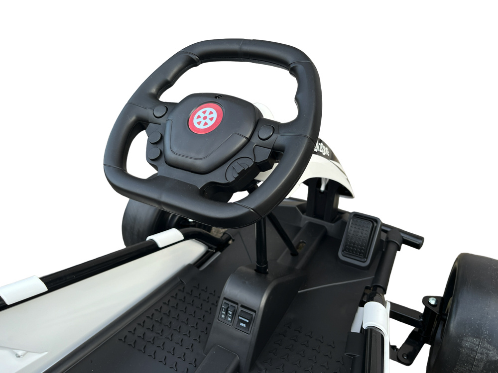 | Rijden | 2 verstelbare snelheden tot 18 km per uur, rijdt zowel vooruit als achteruit, drift functie is aan en uit te schakelen, elektronisch rem bij gaspedaal loslaten |